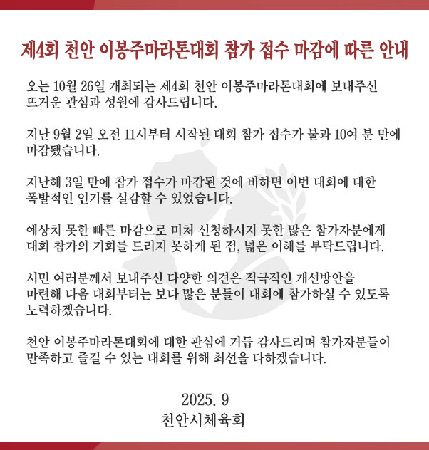 Á¦4ȸ õ¾È À̺ÀÁÖ¸¶¶óÅæ´ëȸ Âü°¡ Á¢¼ö ¸¶°¨¿¡...